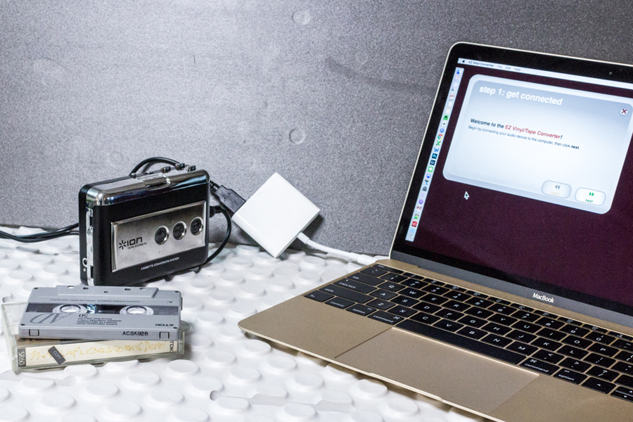 ここからは、カセットテープ音源のデータ化作業を進めていく。作業にあたっての下準備は、専用のソフトウェア「EZ Vinyl/Tape Converter(Windows 用)」もしくは「EZ Audio Converter(Mac 用)」を、付属のCDや公式サイトからインストールするだけだ。ちなみに、「Tape Express」は「iOS対応」をうたっているが、接続には別途アップルのUSBカメラアダプターが必要なので、それを持っていない人にとってはあまり現実的ではないかもしれない。