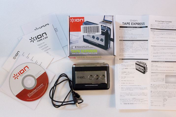 今回使用するのは、往年のマスコミ関係者がインタビューに使用していた通称“テレコ” を思わせる風貌の「Tape Express」。カセットテープの音源をデジタルデータにすることで、デジタルオーディオプレーヤーでも手軽に聴けるようにできるUSBカセットテープ・プレーヤーだ。筆者は4,000円弱で手に入れた(2017年3月22日時点の価格.comの最安価格を参考)。