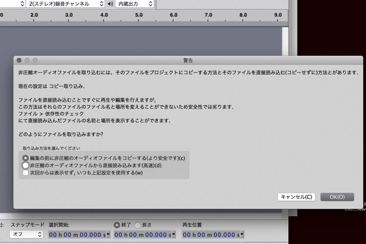 今回はあとでノイズ処理をするため、WAV形式で取り込んだ
