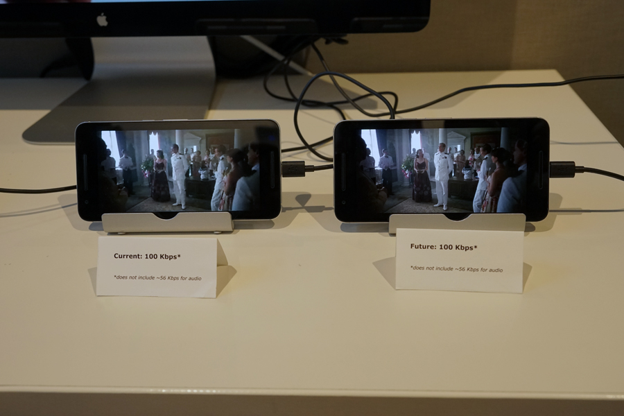 Netflixの会議室で行われたデモンストレーションでは、100kbs同士では圧倒的なほどに最新技術が高画質。現行の555kbpsの映像と将来の277kbsが同等か277kbsの方がキレイに見えるほど。これもNetflixの高画質と安定した配信を支えるものとなっているのだ。