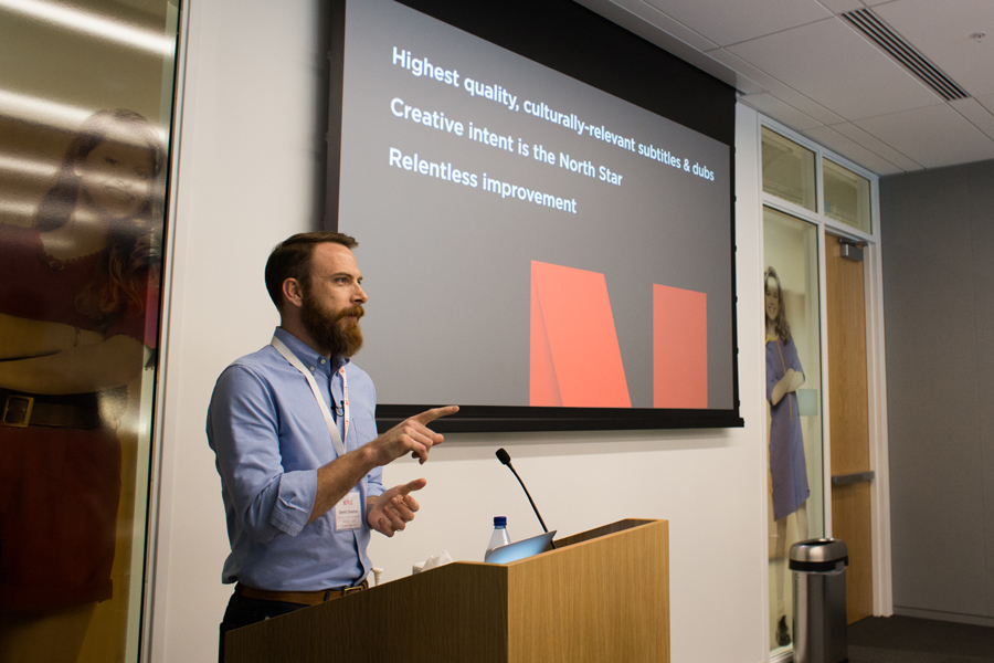 Netflixは映像配信サービスであると同時に、自社でオリジナル作品を製作しているコンテンツの会社でもある。特に世界190か国に作品を配信する上で重要となるのが翻訳だ。「Marvel アイアン・フィスト」では実に20か国語で世界中に配信が行われている。特に重要になっているのは文化間の違いや言い回し、また翻訳者の得意とするジャンルといったものだ。Netflixは最高品質の翻訳を届けるためにソーシャルメディアなどのフィードバックを重視し、もし間違いがあればすぐに修正する対応が進められている。