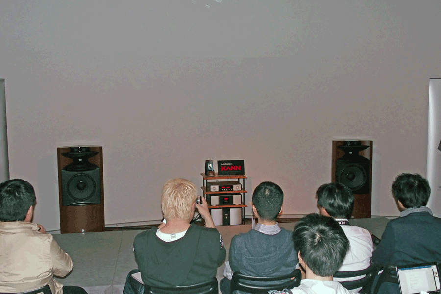 発表会ではMark LevinsonのアンプとJBLのスピーカーを使った総額1000万円以上という超高級据え置きシステムと接続するデモンストレーションも行われた