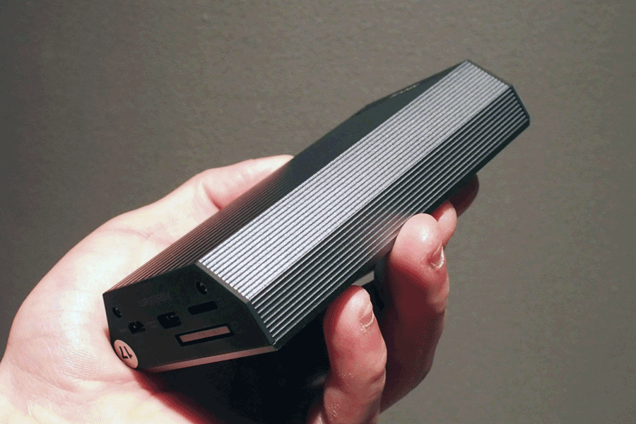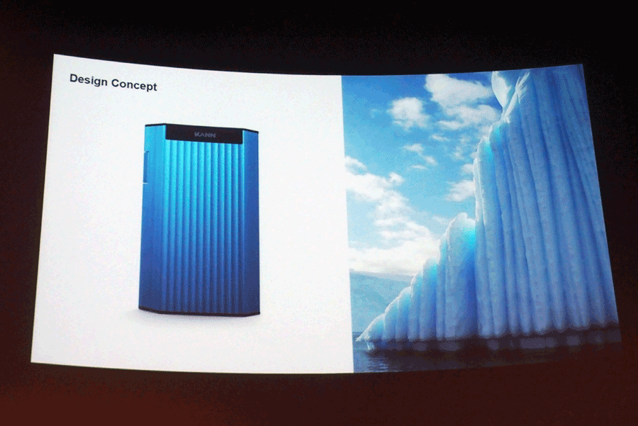 これまでのAKシリーズとはまったく異なるコンセプトを持つKANN。本体外装に氷層の断面をイメージしたという凹凸のあるアルミ素材を採用し、「光と影」というデザインコンセプトを持つこれまでのAKシリーズから、デザイン面でも大きな進化を遂げている。