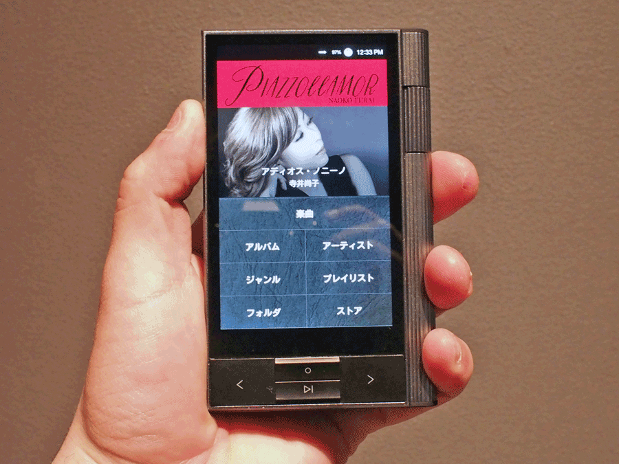 本体サイズは約71.23(幅)×25.6(奥行)×115.8(高さ)mmで、重量は約278g。フロント部分にコントロールキーを廃止したことで、これまでのAKシリーズに比べると若干大型化しており、高性能ヘッドホンアンプを搭載したことで、厚みも増えている。