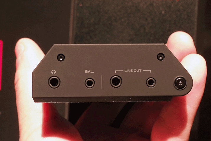 本体上部には、ヘッドホン出力2系統とライン出力2系統の合計4系統の出力が並ぶ。ヘッドホン出力とライン出力は完全独立設計だ