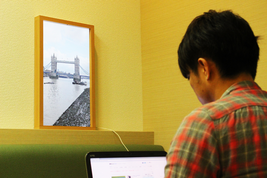 窓がない部屋で作業をしていても、顔をふと上げて「Atmoph Window」を見ると、普段とはまた違う雰囲気でリフレッシュできる。オフィスのような閉塞的な空間に置くと雰囲気をガラリと変えられるかもしれない