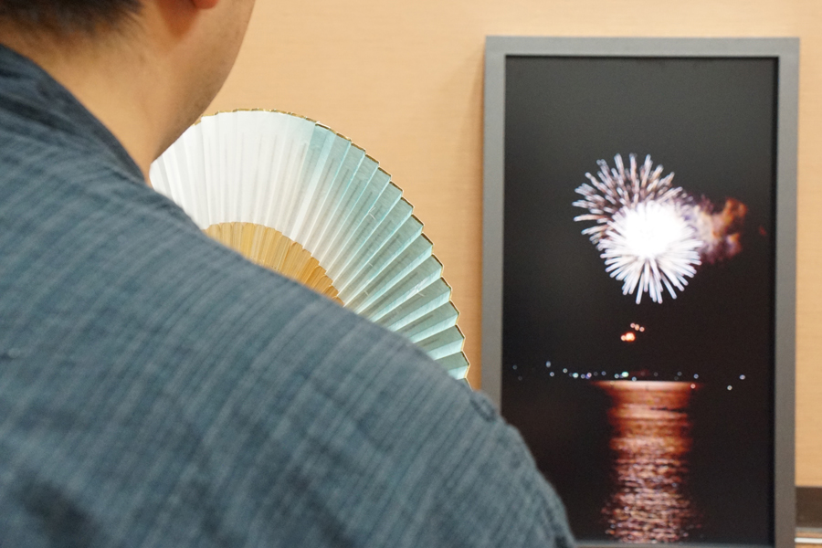 花火を見ながら晩酌(淡路島まつり花火大会)