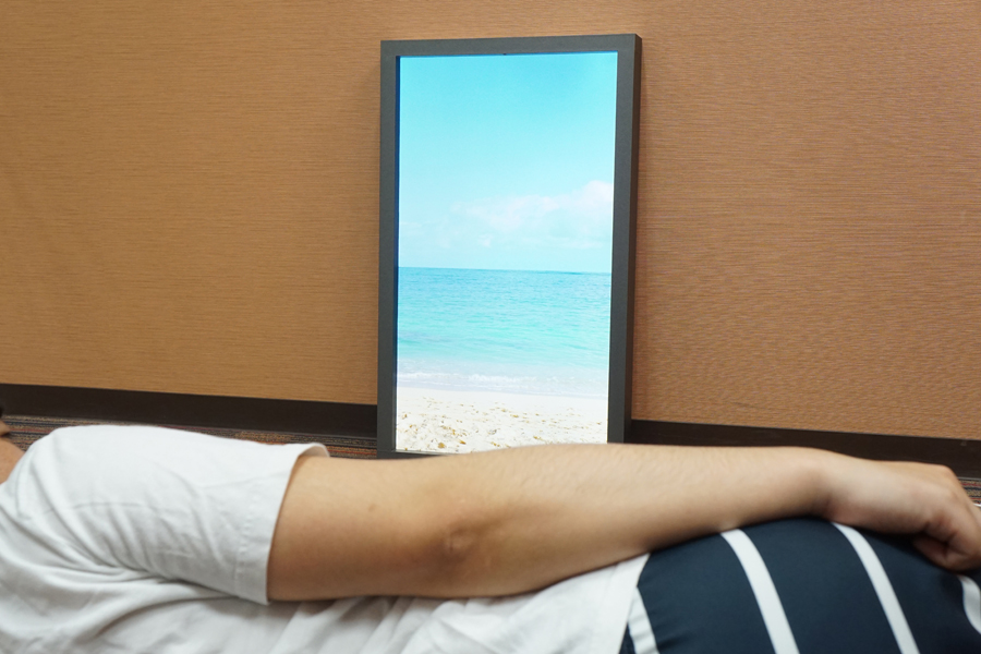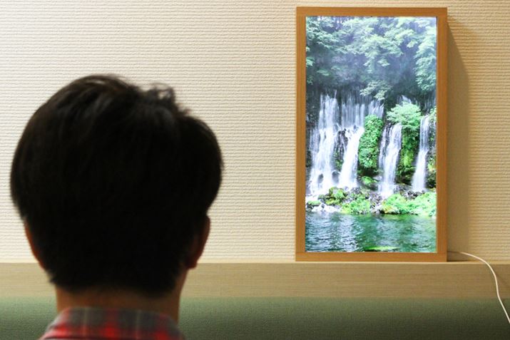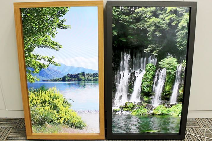 縦長の本体やフレーム、美麗な映像、環境音などが相まって、本当の窓っぽく見える。一瞬見ただけでは液晶と認識できないためか、テスト中には、多くの人が立ち止まって眺めたり、「これ何ですか?」と筆者に聞いてきたりするのが興味深かった。なお、消費電力は30W
