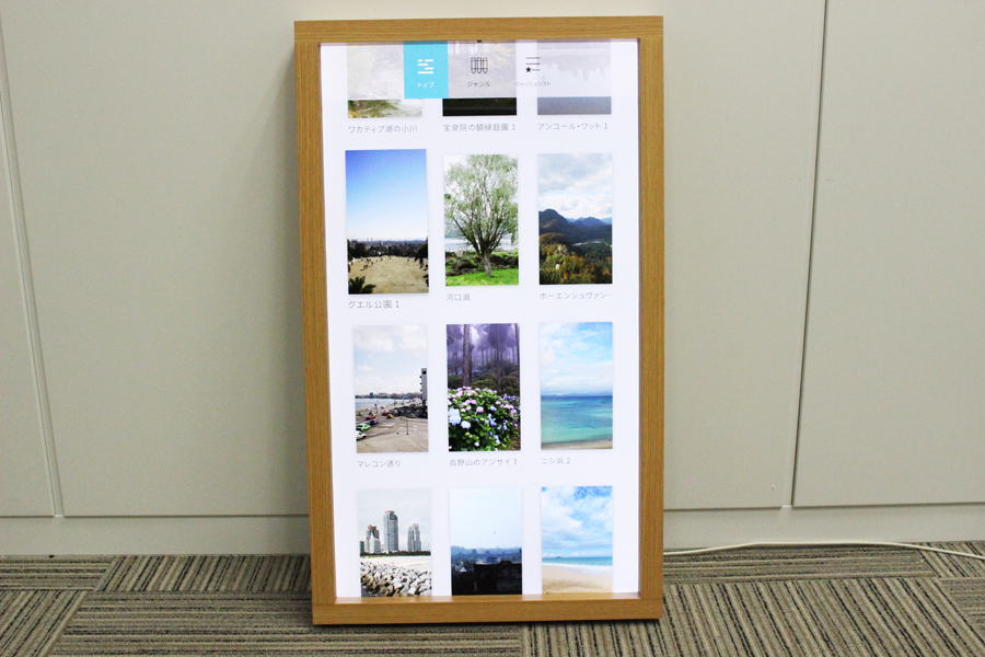 27型液晶(ノングレア)を搭載した「Atmoph Window」。床や机に置いたり、壁にかけたりして使用する