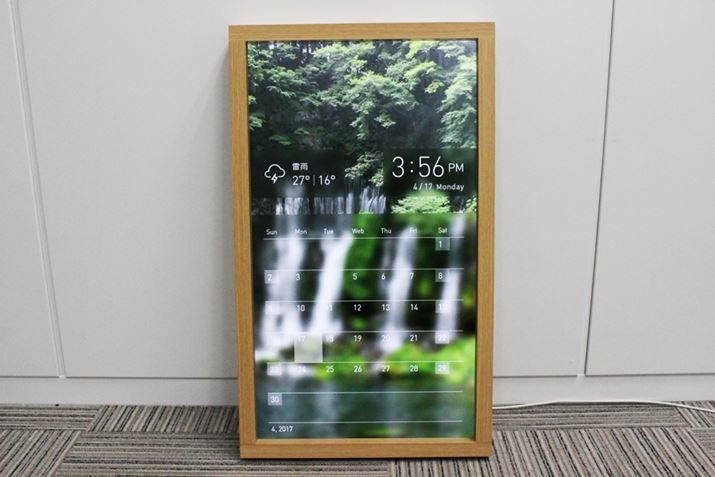 本体サイズは640(縦)×380(横) ×55mm(奥行き)で、重量は約4.9kg。手で持つと結構な重量感があり、倒れると危ないので設置する場所は慎重に選んだほうがよい。ディスプレイのフレームがいかにも窓っぽいデザインで、テレビやモニターとは違う独特の趣が感じられる