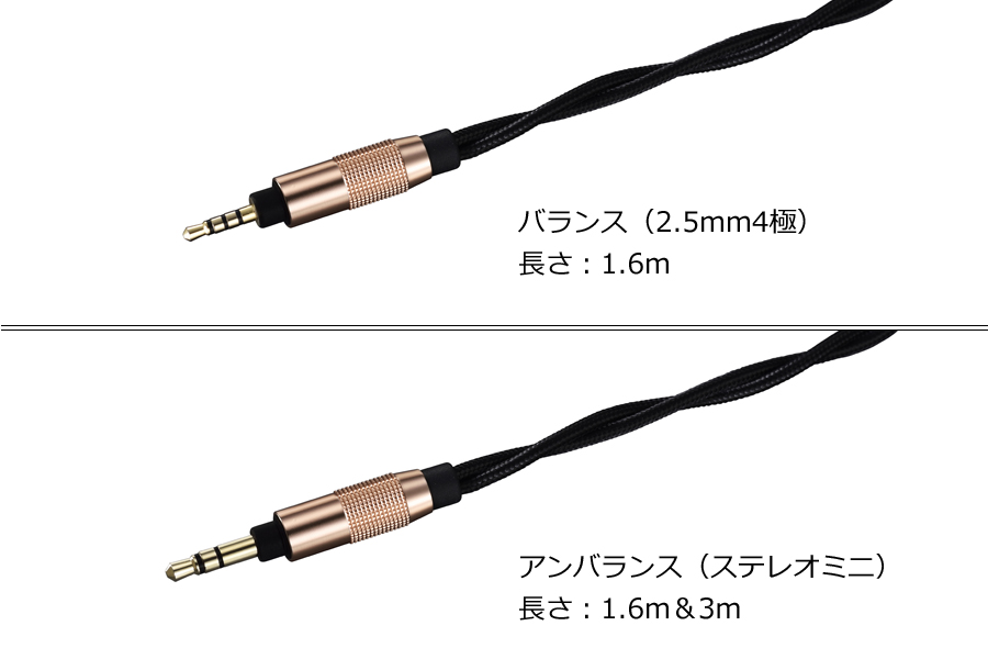 ケーブルは着脱式の両出しタイプで、バランスとアンバランスの両方に対応している