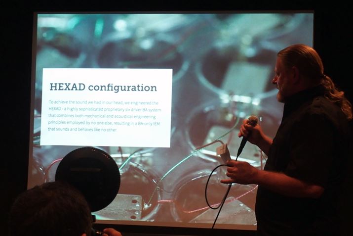 発表会に登壇したDale Lott氏。Aurisonicsを立ち上げ、現在はFenderでイヤホン開発を統括している