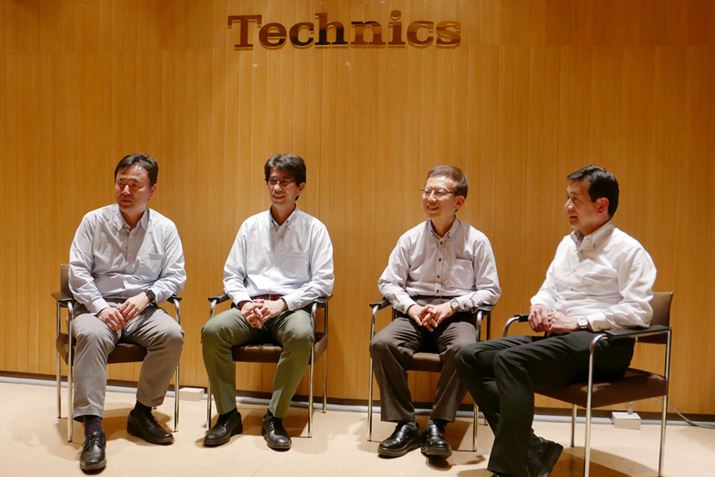 取材に応じて下さったパナソニック株式会社アプライアンス社の皆様。(向かって)右から、テクニクス事業推進室三浦浩一氏、音質担当顧問山崎雅弘氏、開発センター坂井剛氏、テクニクス商品企画担当柏井雅博氏