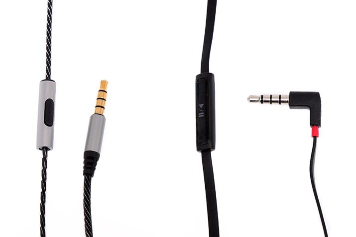 左が「IX5000」、右が「IX3000」(IX1000も共通)のリモコン部分とプラグ部。マイク付きボリューム調整機能を持つリモコン部はデザインが一新され見映えするものに変更されているほか、ステレオミニ端子はL型からストレートタイプに変えられている。ちなみに、コネクターの根元にある断線防止の保護カバーもよりしっかりしたものになっている