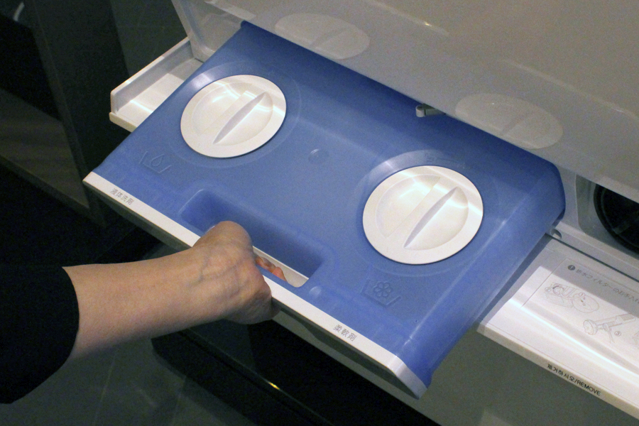液体洗剤と柔軟剤を入れっぱなしにできるタンク。1か月ほどは補充しなくても持つらしい