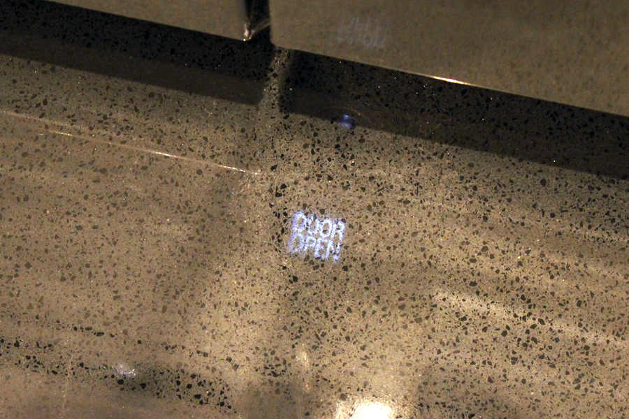冷蔵庫の前を通ると、足元に「DOOR OPEN」の光が照らされる。これを踏むと冷蔵庫のドアが自動開閉!