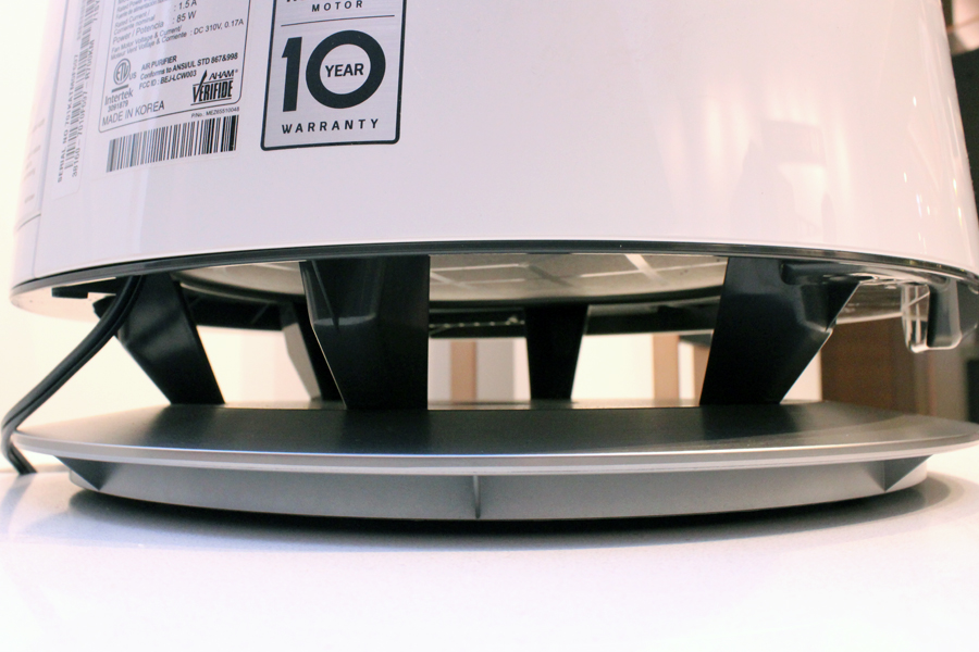 1つ目のフィルターは本体背面から引き出すことができる。なお、後述する2つ目のフィルターも含め、蛍光灯や太陽光などの可視光を照らすことでフィルターの脱臭性能が再生されるというブラックフィルターシステムを採用。面倒なフィルター交換がなく長く使える、とLGではアピールしている