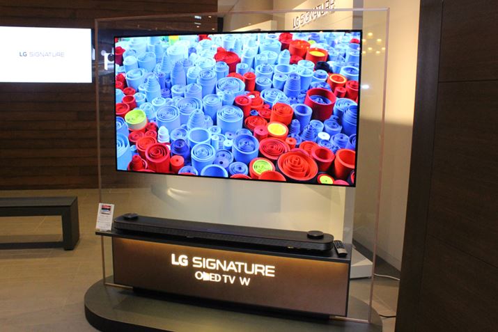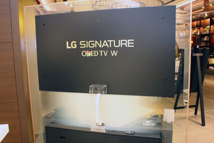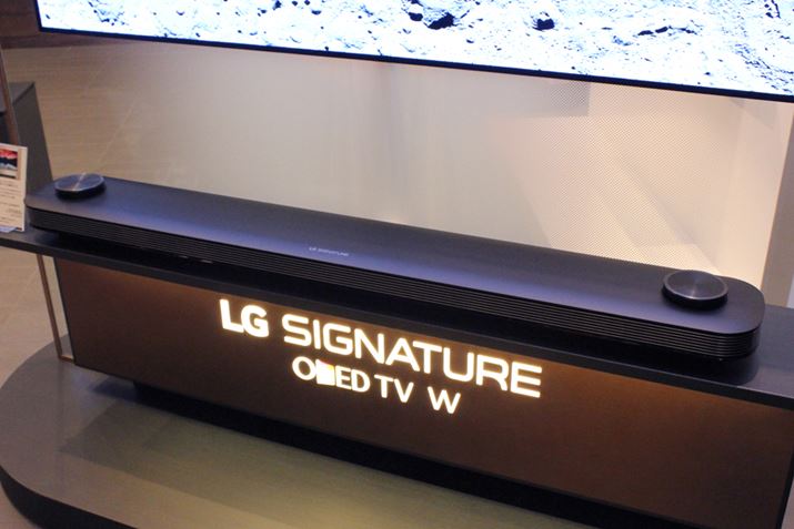 「OLED 65W7P」は、グローバル発表当初から話題になった極薄の4K有機ELテレビ。セパレートになったディスプレイ部が薄くて軽い「Picture-on-Wall」デザインを採用している