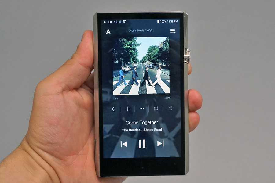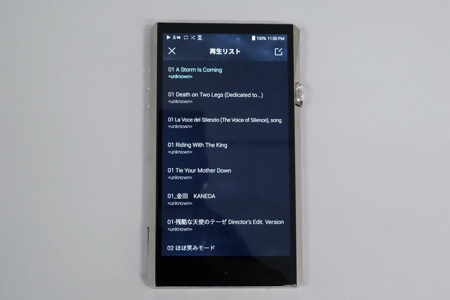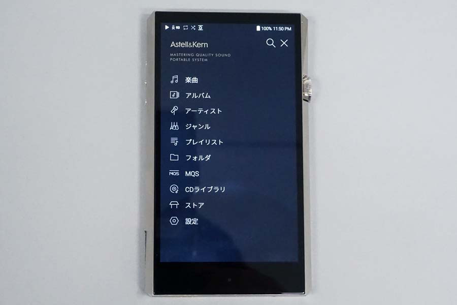 SP1000の楽曲再生画面。この画面から各種画面にアクセスする