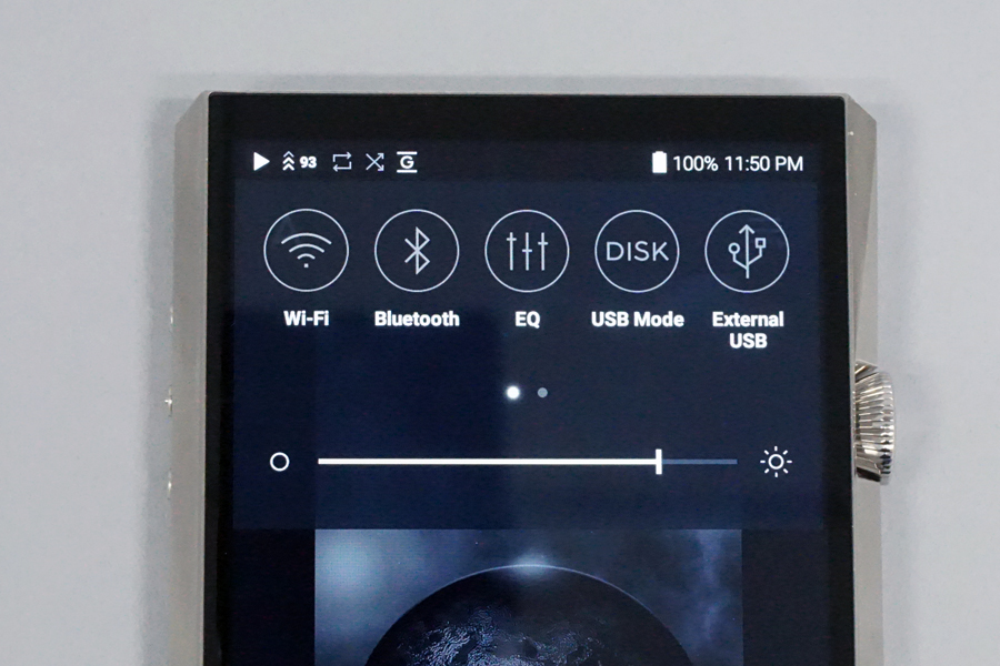具体的には、音楽再生画面を基点に、上下左右からのスワイプで各種機能を呼ぶことで、音楽再生デバイスとしての使い勝手を高めたという。画面左からスワイプすると、「アーティスト」や「アルバム」といった基本メニューを、画面上からスワイプするとイコライザーやUSB-DAC出力切り替えといった使用頻度の高い機能へのクイックアクセスメニューが、画面右からスワイプすると再生リスト画面が、画面下からスワイプすると再生履歴画面へ遷移する形となり、必要最低限の操作で楽曲再生に必要な機能へのアクセスが可能となった。