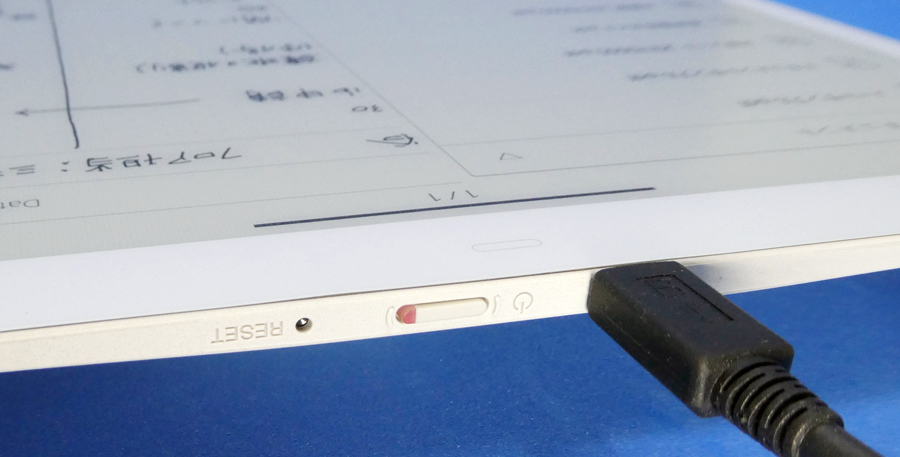 バッテリー切れを気にせず使えると、逆に充電するのを忘れてしまいそうでもある。「DPT-RP1」の充電は本体上部のmicroUSB端子で行うのだが、パソコンと本体をUSBケーブルで接続すれば、ファイルの同期と充電を同時に行えるので、いざというときのバッテリー切れが心配という人は、microUSBケーブルでファイルの同期を行うようにするといいだろう。