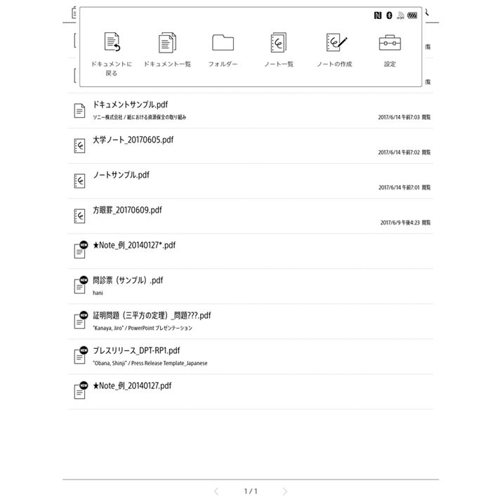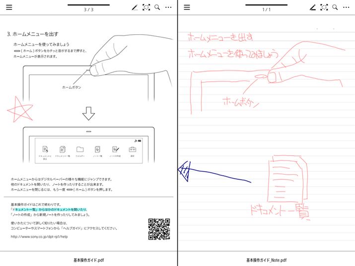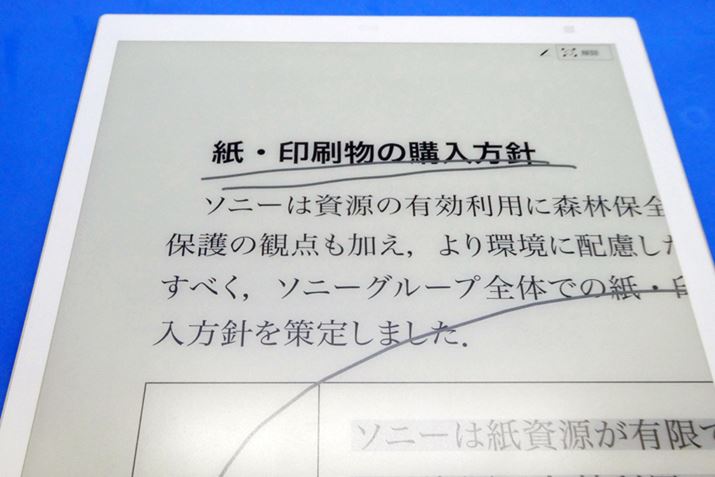 先述したとおり、「DPT-RP1」で扱えるファイルはPDFファイルのみ。パソコンなどで作ったPDF書類を見たり、閲覧中のPDFに直接スタイラスペンでメモやハイライトを入れたりするのが主な使い方になってくる。