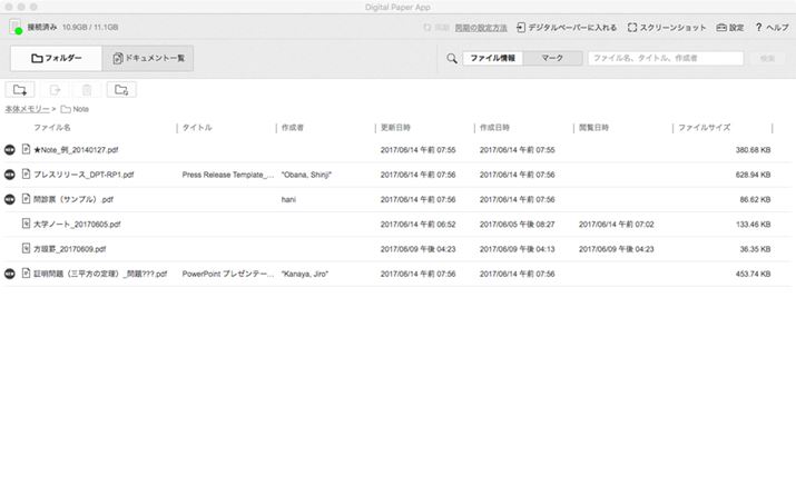 「DPT-RP1」とのPDFデータのやり取りだが、Windows・Mac用の専用ソフト「Digital Paper App」を使って行う。このソフトがじつによくできていて、ファイルの相互転送が楽で、機能も充実していて使いやすい。