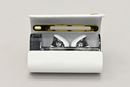 さらに、完全ワイヤレスイヤホンとしてはかなり特殊だが、今後登場予定のオプションとして「カスタムイヤーピース」(耳型を採取して作る個人専用イヤーピース)と「個人パーソナライズ」(ユーザーの特徴を計測して個人個人に最適なサウンドを設定するサービス/専用測定器を使用するため川崎本社で実施予定)の2つが予定されている。完全ワイヤレスイヤホン製品でメーカーみずからカスタムイヤーピースを用意するのはこれまでほとんど例がないが、カスタムイヤーピースを装着した状態でもイヤホン本体を充電ケースに格納できるように対策済みと準備は万端。「ZE8000」はドライバーが収まる部分までカバーされた専用イヤーピースが採用されているが、元々イヤホン本体がかなり個性的なデザインのためか、ごくまれに装着が最適でない人がいる。そういった人たちにはとてもうれしいオプションだ。また、個人パーソナライズについて、詳細は未発表ながらかなり細やか、かつ効果的な測定と演算を行うシステムのようで、そちらも大いに期待が持てる。