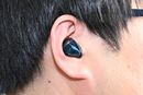まず、イヤホン本体は「イン・イヤー・モニターにインスパイアされた最先端技術と唯一無二のデザイン」とメーカーがアピールしているとおり、ほかに類を見ない独得のデザインを採用している。部分的に内部が見えるクリアパーツを配置するなど、演出もユニークだ。実際に装着してみようとした際、最初はどう装着するのかわからなかったが、LRの文字の上限を頼りに微調整していると、ピッタリとはまってくれるポイントがあった。やや大柄で、フェースプレート下側が耳からちょっと出ているが、フィット感、落ち着きは悪くない。ノズル部分に音質のための金属製ノズルが使われていることが、装着感でも功を奏しているのかもしれない。