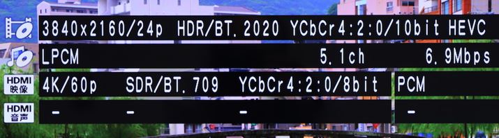なお、テレビにくわしい方向けの情報となるが、HDMI3からの4K映像の入力は、4K/60p YCbCr4:2:0(8bit)まで対応しているようだ。Ultra HD Blu-rayプレーヤーから4K/60p YCbCr4:4:4(8bit)に拡張した映像の入力を試みたが、プレーヤーがテレビ側の対応をチェックして、自動的に4K/60p YCbCr4:2:0/8bitでの出力に切り替わった。4K解像度での映像出力が可能なノートPCでも接続を試してみたが、4K/60p RGBの入力は不可のようで、自動的に30Hz(30p)での接続となった。