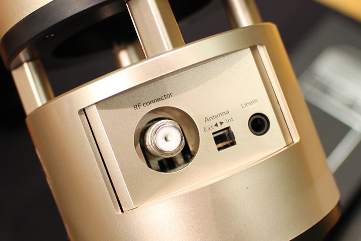 同じくボディ下部には、外部アンテナと接続するRFコネクターも搭載、その左はアンテナの切り替えスイッチ、右端は、ライン入力端子。なお、外付けのアンテナ線も同梱されている