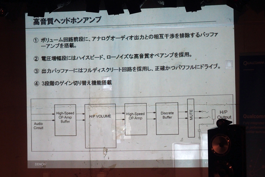 スピーカー出力用パワーアンプとは別のヘッドホン出力専用アンプを搭載するなど、ヘッドホン出力にもこだわっている