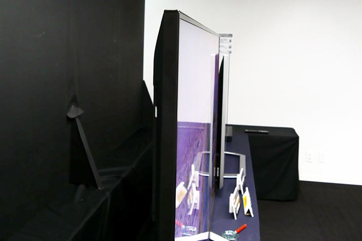 8Kパネルを採用するが、ディスプレイ部の薄さは92mmで、重量は45kg(スタンド含む)と、同クラスの4K液晶テレビと大きさはほぼ変わらない。スタンドを含めた本体サイズは、156.4(幅)×96.7(高さ)×37.5(奥行)cm。消費電力は470W
