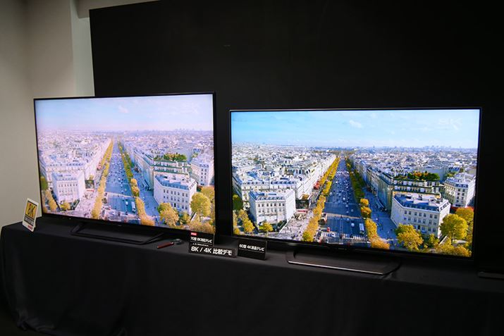 シャープは2015年に世界に先駆けて8Kディスプレイ「LV-85001」(85V型)を製品化済み。2017年6月には第2弾として70V型液晶パネルを採用した「LV-7002」もラインアップに加え、8Kディスプレイ開発に特に力を入れている。