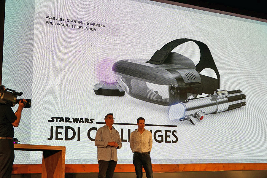 「Star Wars/ジェダイ・チャレンジ」は、レノボによるミラージュVRヘッドセットのゲームで、ライトセーバー・コントローラーとライトセーバーの青白い光を検知するトラッキング・ビーコンを使い、動きを検知してプレイする。「ライトセーバーバトル」、「戦略バトル」、「ホロチェス」の3つのゲームが提供される。