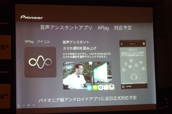 天気やニュースなどのリアルタイム情報や、メールやSNSなどに入るメッセージのテキスト情報を読み上げてくれるAPlay for Pioneer。Android版の正式リリースは今秋を予定している