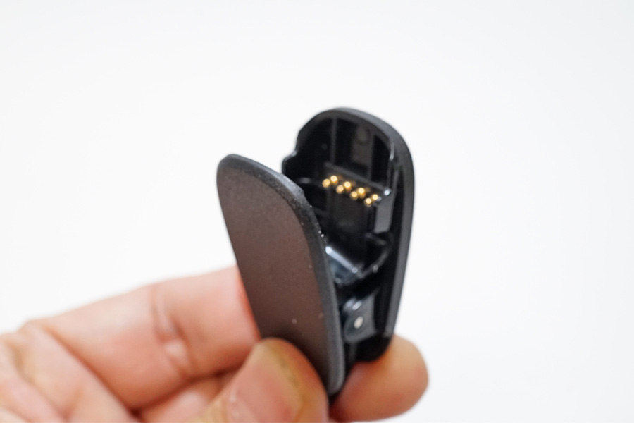 本体に接続するほうは、洗濯ばさみの形状をしており、開くと金属の端子が見えます