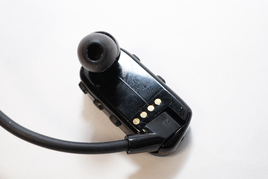 さて使用感ですが、まず芯が入ったかのような硬いケーブルですが、装着してみてその理由がわかりました。これって、首にかけるものではなく、後頭部に固定するものだったんですね。