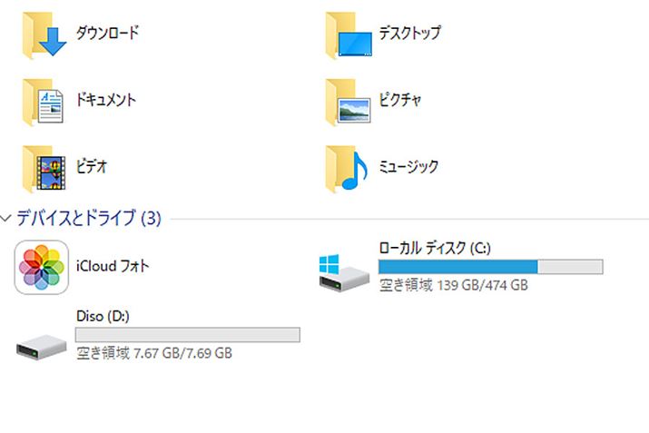 本モデルがパソコンに認識されるとエクスプローラーに「Diso」という名前のデバイスが認識されるので、あとは音楽ファイルをコピーするだけ