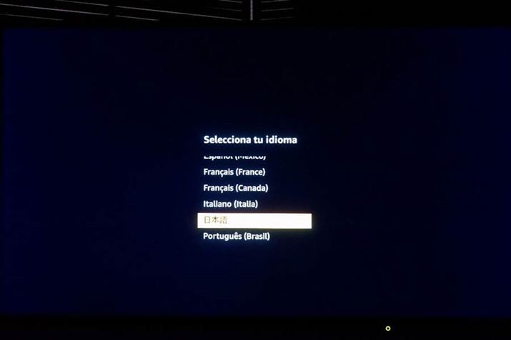 起動直後の画面。一番初めは言語選択から。ちなみに、付属リモコンは出荷時にあらかじめペアリングされているので、特に設定などを行う必要はない