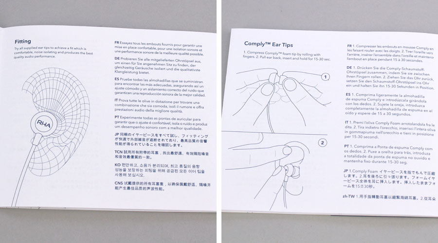 実際、付属の取扱説明書にもイヤーピースのフィッティングについて説明が載っている。まずはこれを参考にしよう