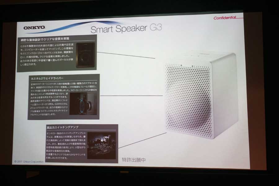 2017年11月30日、オンキヨー&パイオニアマーケティングジャパンは、オンキヨーブランドより発表されたスマートスピーカー「G3」と「P3」の日本市場導入を記念した報道関係者向けの体験会イベントを開催。スマートスピーカー最新2機種のデモンストレーションのほか、同社のAIに関する最新の取り組みについての解説が行われた。スマートスピーカー2機種の詳細を中心に、レポートをお届けする。
