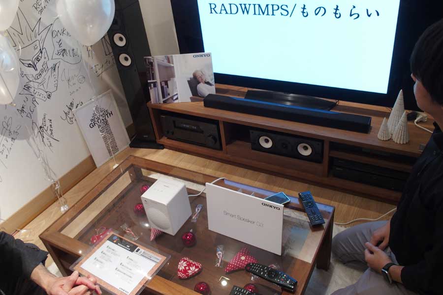 スマートスピーカー「G3」と「Chromecast builit-in」をサポートした同社AV機器との連携デモの様子