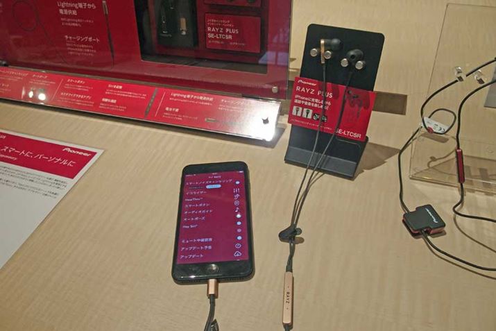 パイオニアブランドから発売されているLightning接続イヤホン「RAYZ」も展示。こちらは、アップル「Siri」をサポートしている