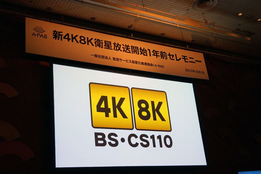 2018年の12月1日に”4K・8K実用放送開始”−−BS/CS放送を使った「新4K8K衛星放送」が開始されるちょうど1年前となる12月1日、都内では業界向けのセレモニーとなる「新4K8K衛星放送開始1年前セレモニー」が開催。一般ユーザー向けにもNHKによる「放送開始まであと1年!4K・8Kスーパーハイビジョンパーク」という来場自由のイベントが新宿パークタワーで12月1日から12月3日まで開催されるなど、業界団体が4K・8K実用放送の普及に向けてついに動き出した。