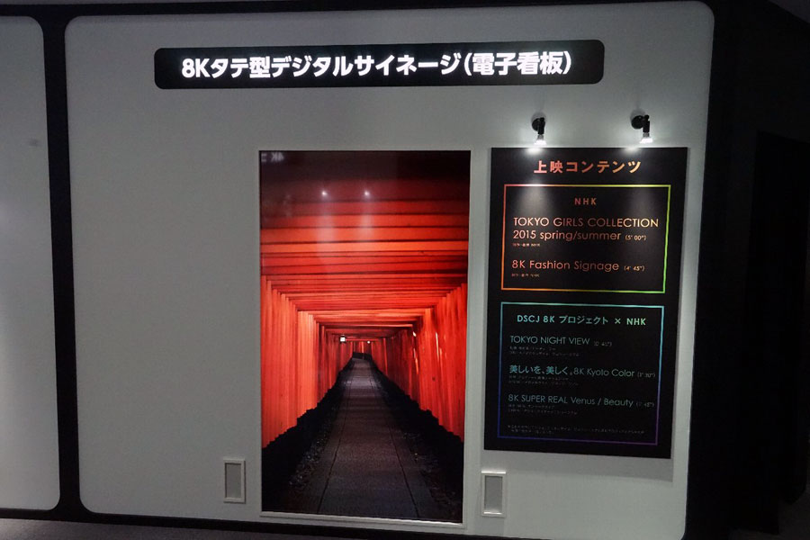 8Kデジタルサイネージの紹介コーナーでは、縦型の8K映像のデモンストレーションが行われていた