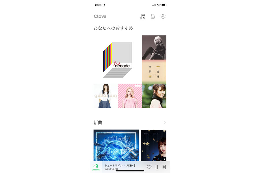 「LINE MUSIC」による音楽ストリーミング再生は、音声での操作のほか、専用アプリ「LINE Clova」の画面から選曲などの操作が行える
