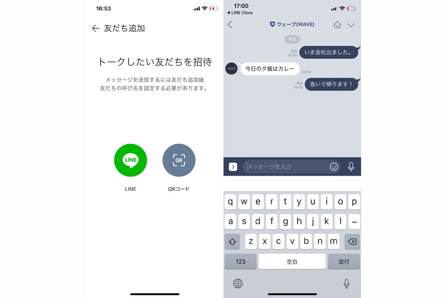 友だち登録さえしておけば、LINEアプリから普通にメッセージを書き込むだけで、Clova WAVEにメッセージを送れる。スマートフォンを使っていない家族ともLINEのやり取りができるようになるのは画期的だ