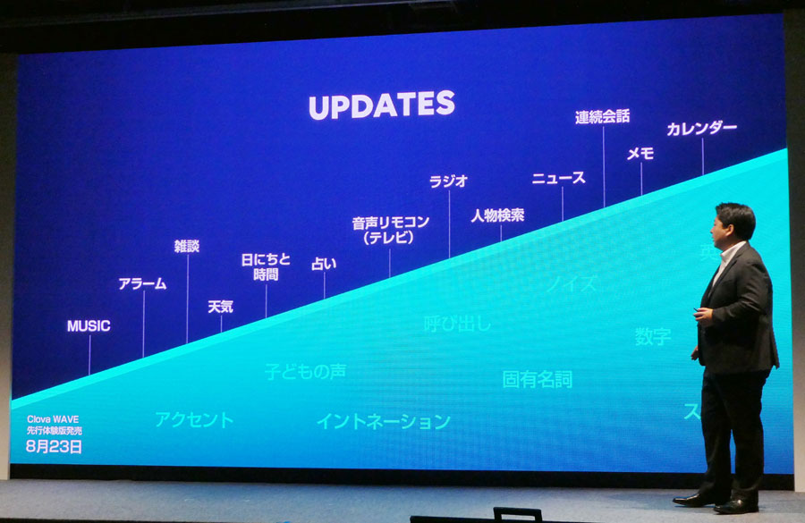 先行販売期間を経て10月5日から正式発売されてからも、さまざまな機能が追加され、できることが日々増えているClova WAVE。10月5日に行われた発表会でも、経路検索機能や運行情報機能、タクシーやデリバリーを呼ぶ機能、通訳機能など、今後のアップデートで提供を予定している機能についてもいくつか明かされた。