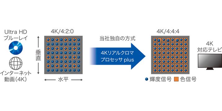 デコードした4K(4:2:0)信号を独自の高精度マルチタップ処理で4K(4:4:4)に補間する独自の4K対応エンジン「4Kリアルクロマプロセッサplus」を搭載
